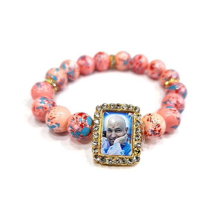 • Item Name: Peach With Multicolor Splash Round Pearl Bracelet with Jai Guruji Swaroop Handmade Bracelets for Men and Women
