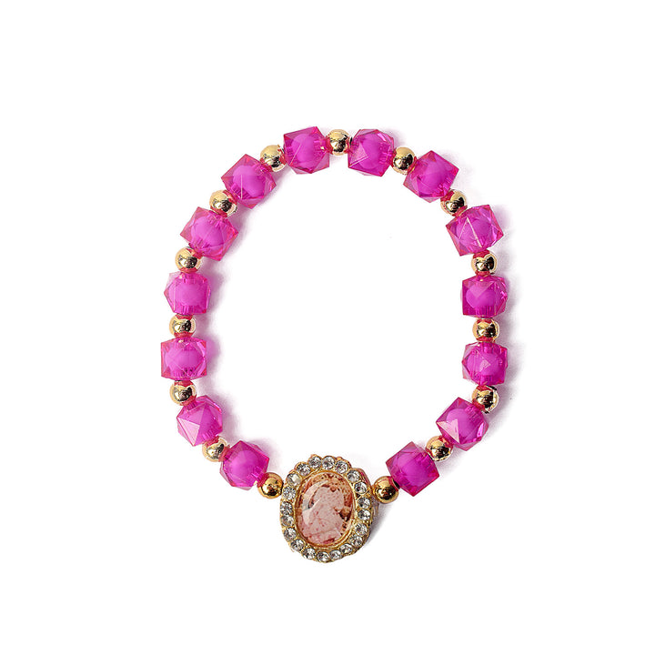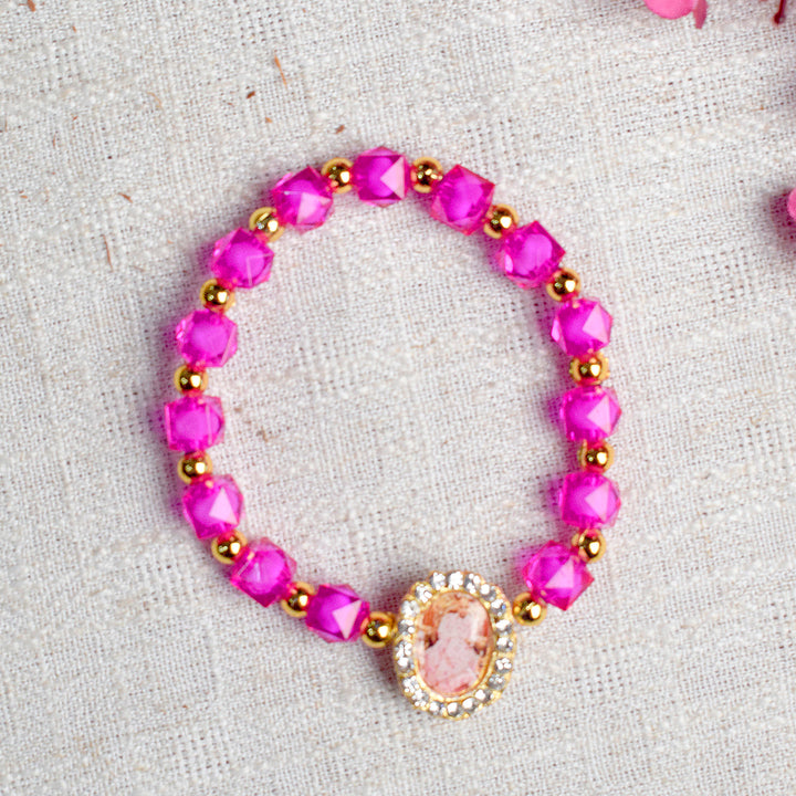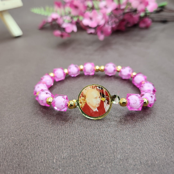 Pink Pearl Bracelet with Jai Guruji Swaroop Handmade Bracelets for Men and Women