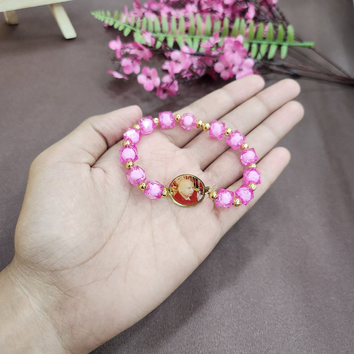 • Item Name: Pink Pearl Bracelet with Jai Guruji Swaroop Handmade Bracelets for Men and Women