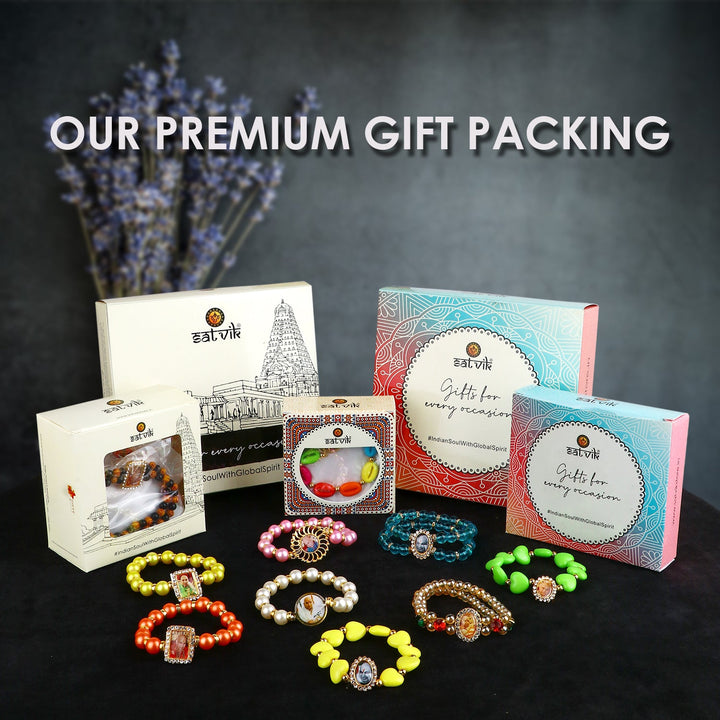 Guruji Stone Bracelets removes negative energy and and uplift the spiritual, mental and physical Health. Easy to wear, Skin Friendly. You can Gift this Beautiful Beads Bracelets to your family, friends, relative, neighbor on religious occasion like : pooja, kirtan, return gift idea, housewarming, home inauguration, Puja and other. Very beautiful bracelet made of artificial ceramic stones with smooth round finish, each bracelet is handpicked for quality check, Jai Guruji is Photo also there in the bracelet. This is matches trend with tradition. Proudly Made in India for Our Devotees.