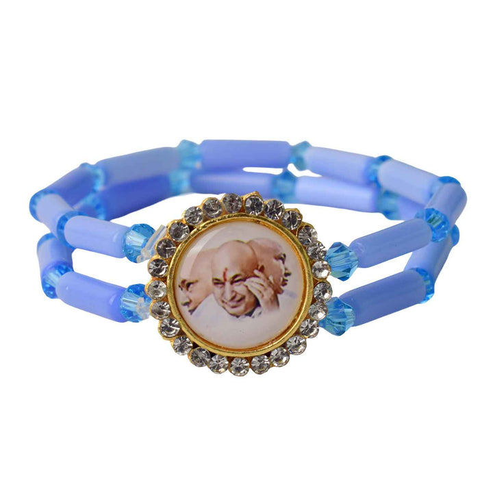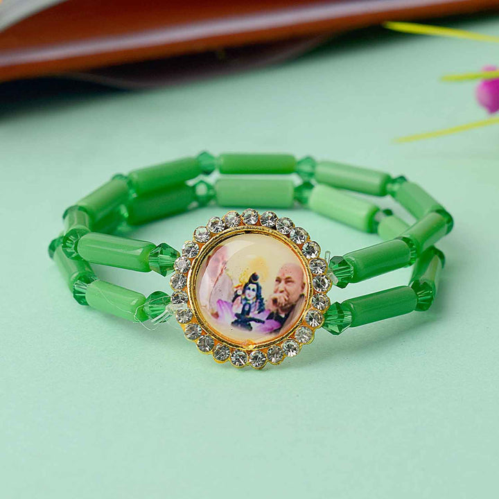 The Vibrant Long Beads Guruji Swaroop Bracelet (Assorted) showcases a striking design using elongated colorful beads that radiate spiritual vibrance and positivity. Carefully handcrafted to suit all wrist sizes, this Guruji Bracelet is ideal for spiritual practices, gifting, or as a thoughtful accessory to pair with your daily wear. Every bracelet holds an essence of devotion and charm.