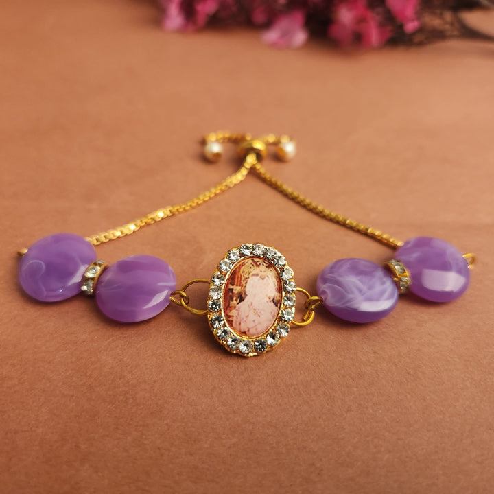 Violet Round Pearl Bracelet with Jai Guruji Swaroop Handmade Bracelets