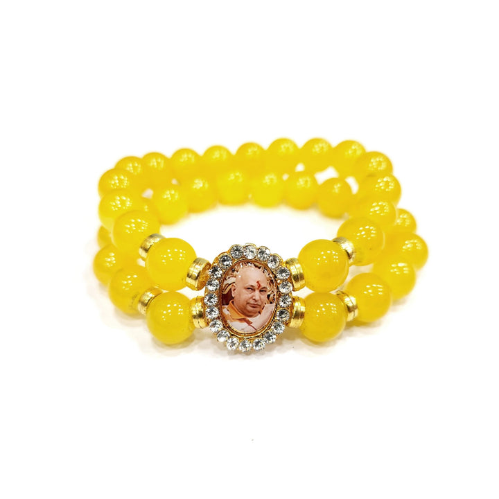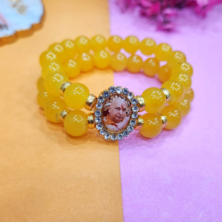 Yellow Round Pearl Bracelet with Jai Guruji Swaroop – Satvikworld.com