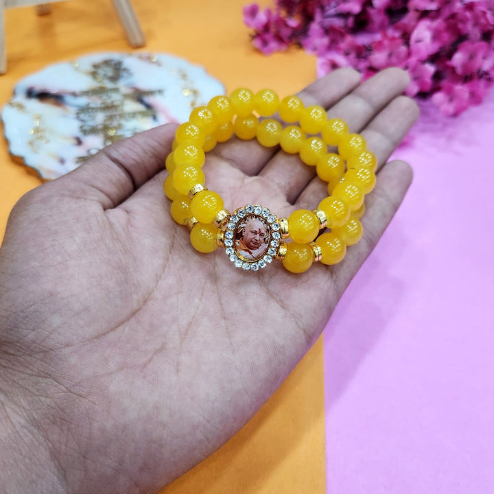 • Item Name: Yellow Round Pearl Bracelet with Jai Guruji Swaroop Handmade Bracelets for Men and Women