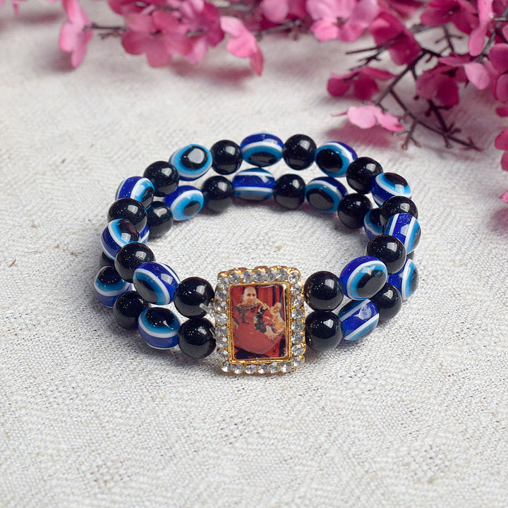 Blue and Black Evil Eye Round Pearl Bracelet with Jai Guruji Swaroop