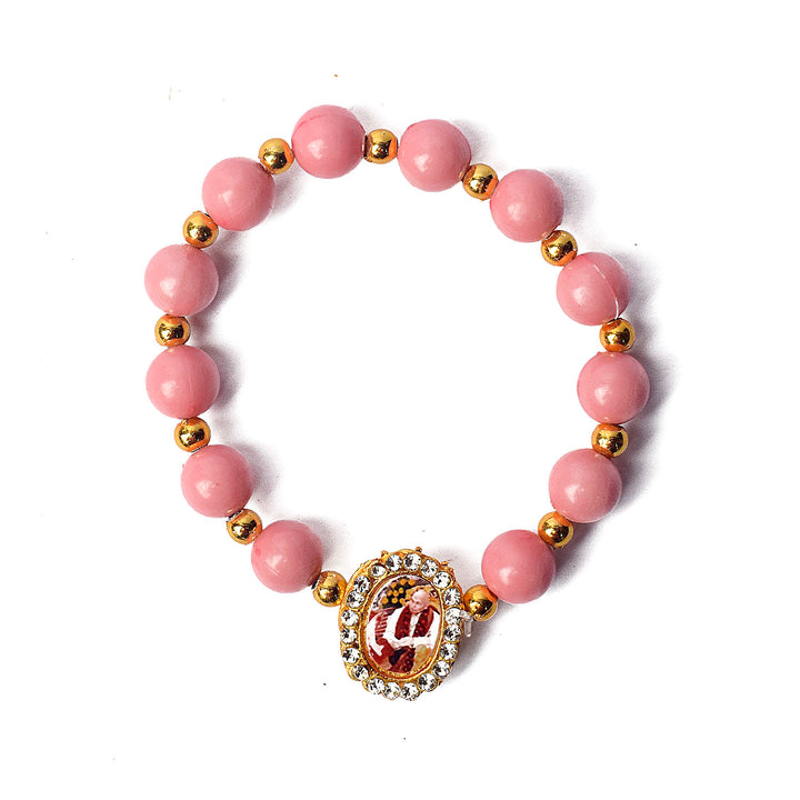 • Item Name: Pink Round Pearl Bracelet with Jai Guruji Swaroop Handmade Bracelets for Men and Women