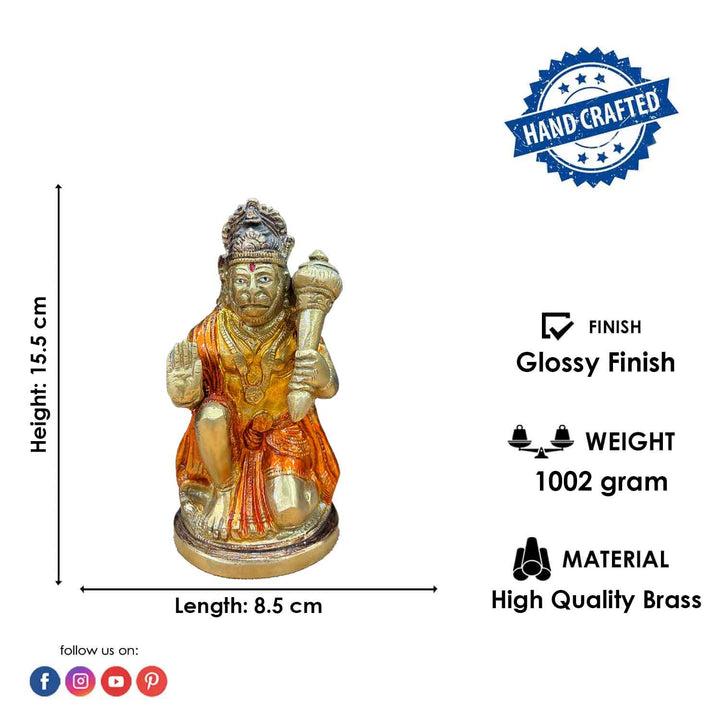 • Item Name: 6.1 Inch Brass Hanuman Statue