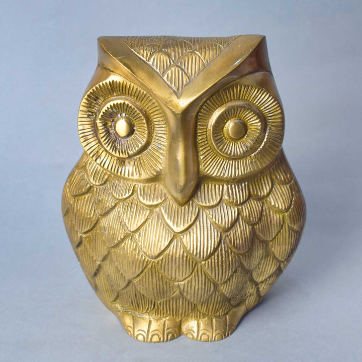 Get 6.9 Inch Large Brass Engraved Owl (Lakshmi Vaahan) Statue Satvikworld.com