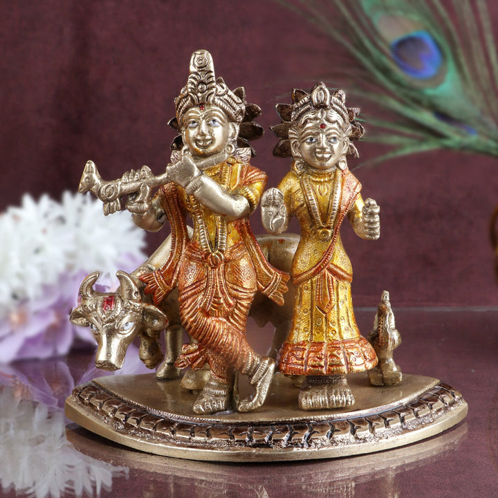 Charismatic Radha Krishna Colorful Brass Idol | Satvikworld.com