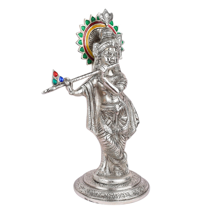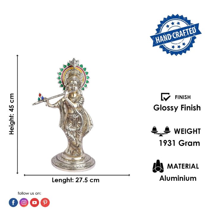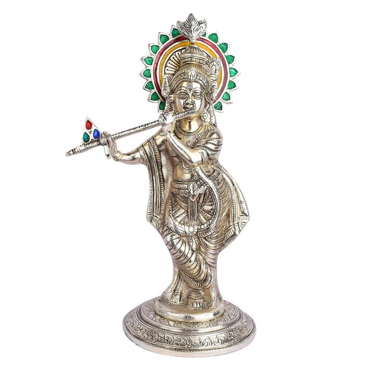 About the Product:Crafted with high-quality metal, this Alluring Krishna Idol with Cow is perfect for both pooja and home decor. Its intricate design and durable material make it a long-lasting addition to your spiritual practice. Bring home divine blessings and auspiciousness with this elegant and meaningful piece.