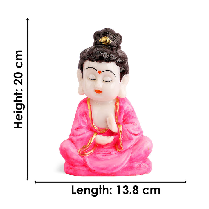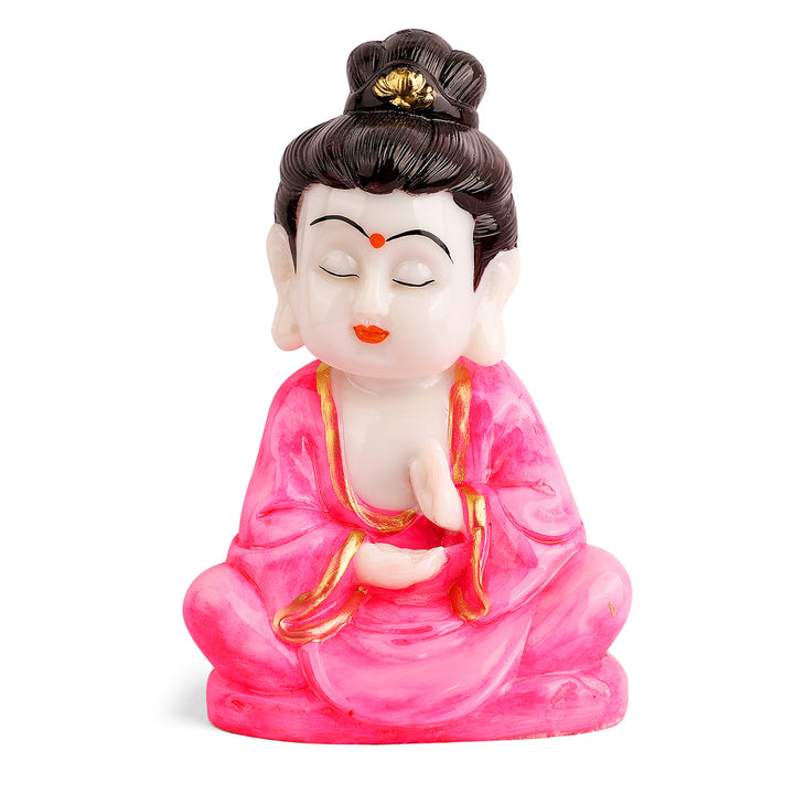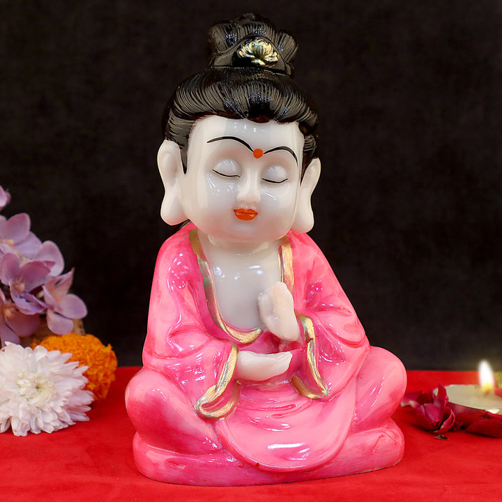 About Product: Crafted from durable resin, the sculpture emanates a soft glow, enhancing the peaceful ambiance that surrounds the baby Buddha. The detailing in the resin brings out the tiny features, from the peaceful closed eyes to the gentle folds of the robes, evoking a sense of divine innocence and tranquility.This Baby Buddha exudes a presence of purity and wisdom, embodying the beginnings of enlightenment. The choice of resin as the crafting material not only adds a subtle sheen to the sculpture but also ensures its durability over time.
