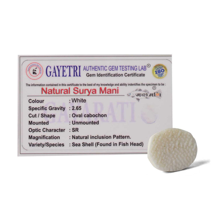 Item Name: Certified Surya Mani / Machh Mani in White Finish