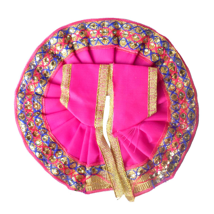 Available in blue, green, pink, orange, yellow, and red, and crafted to fit Laddu Gopal idols in sizes 1 and 2, this exquisite dress effortlessly combines tradition with a festive charm, making your deity’s appearance truly divine.