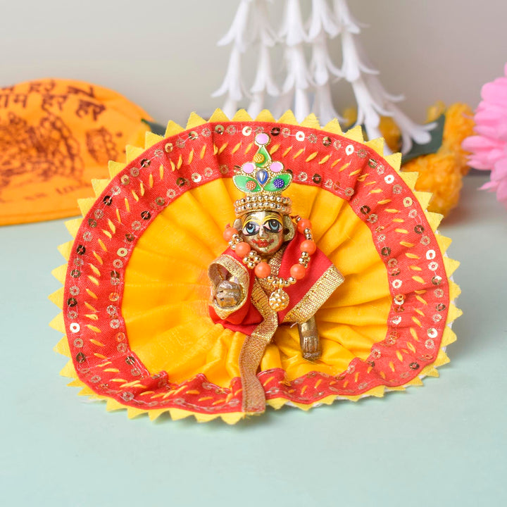 Item Name: Radiant Yellow-Red Laddu Gopal Dress with Sequin Border