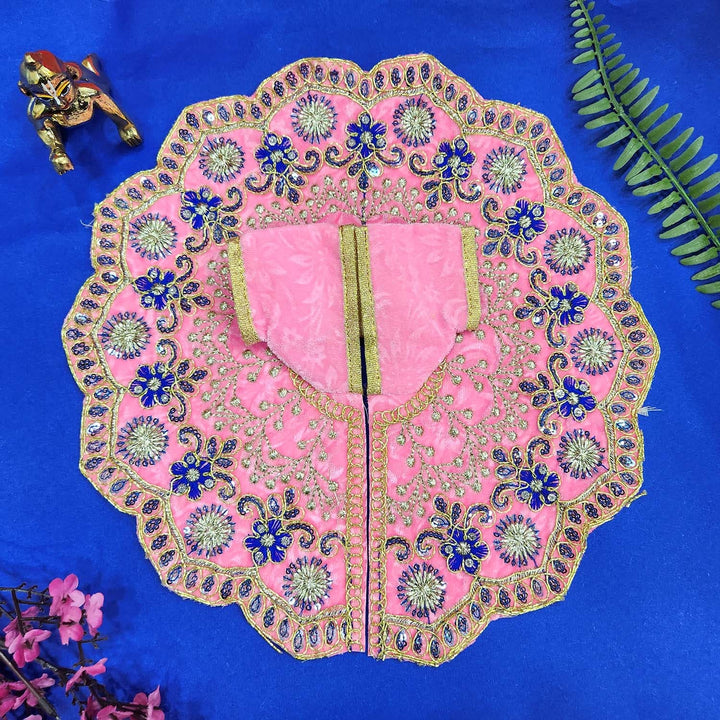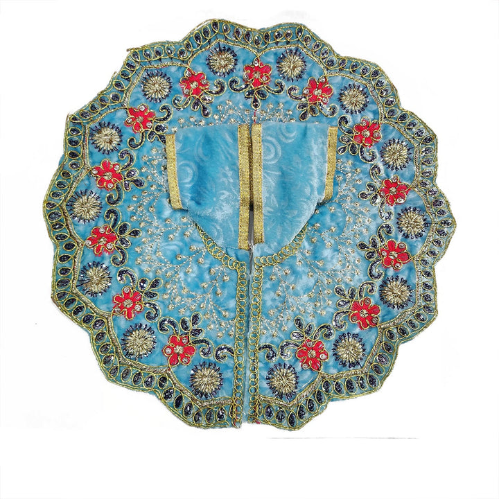 Dress your cherished Laddu Gopal in this elegant blue Dress No.6, Design-1, featuring exquisite embroidery and delicate detailing. Perfect for festive occasions, daily pooja, or Janmashtami celebrations, this outfit enhances the divine charm of your deity. Crafted from soft, high-quality fabric, it ensures comfort while adding a royal touch to your temple décor.