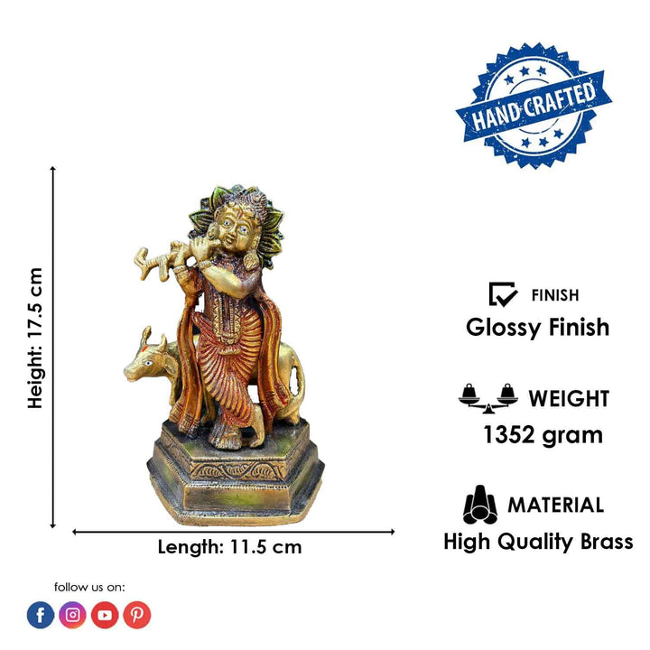 • Product Name: 6.9 Inch Lovely Krishna with Cow Brass Idol