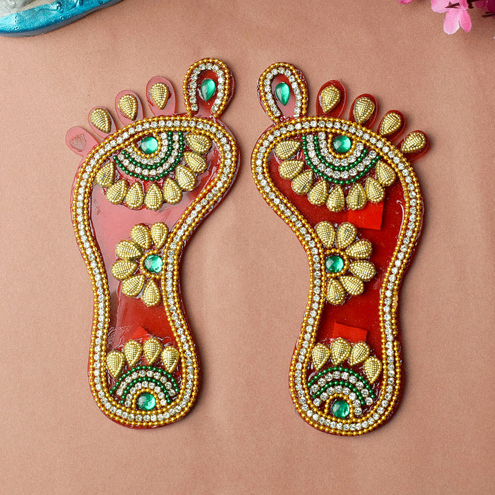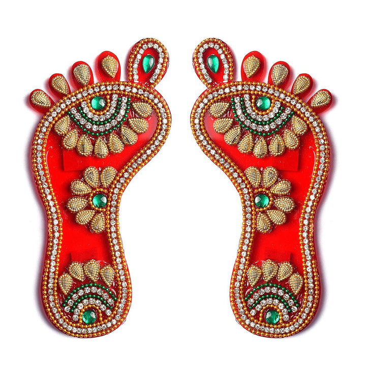 laxmi charan ensemble | goddess lakshmi footprint set | laxmi charan for pooja | divine footprints sticker | lakshmi paduka for home | spiritual charan design | diwali laxmi charan | entrance pooja decoration | sacred laxmi charan set |