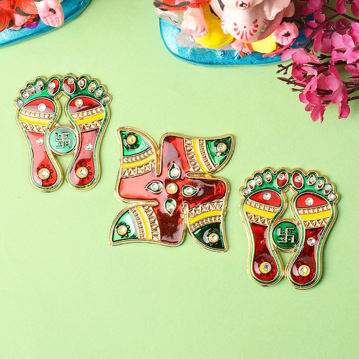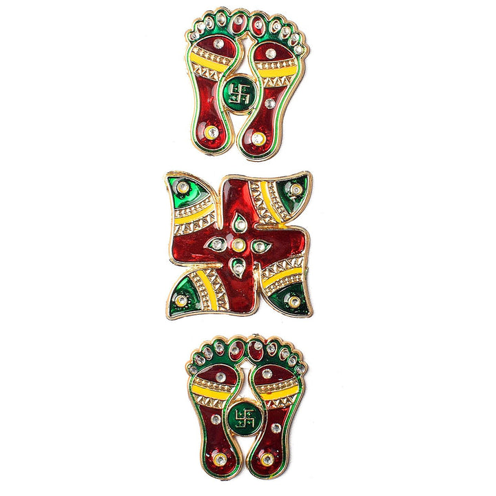 • Item Name: Charanpaduka with Swastik Sticker Ensemble