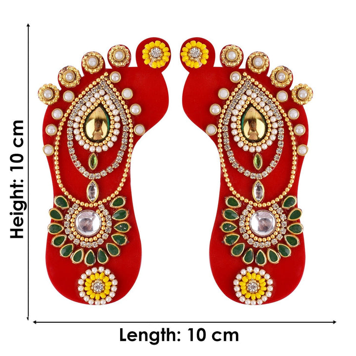 • Product Details: Material: Hight Quality Material, Dimensions:  Charan: Height: 10cm, Length: 10cm, Swastik: Height: 6.3cm, Length: 6.3cm, Weight: 100gram, Finish Type: Glossy.