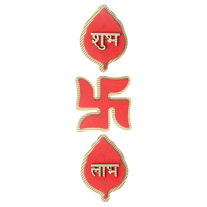 Shubh Labh Leaf With Swastik Wooden Sticker