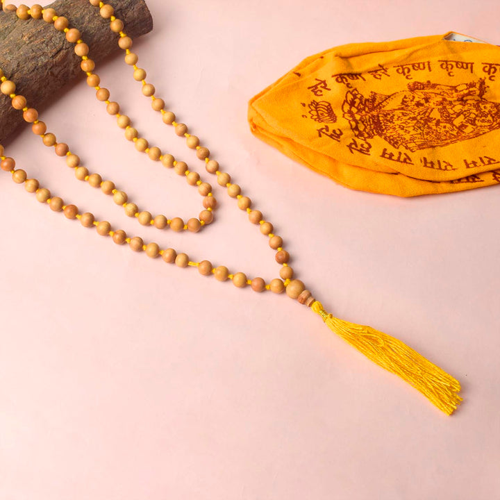 Certified 8-9mm 100% Original Authentic Mysore White Sandalwood (Chandan) yellow thread Jap Mala