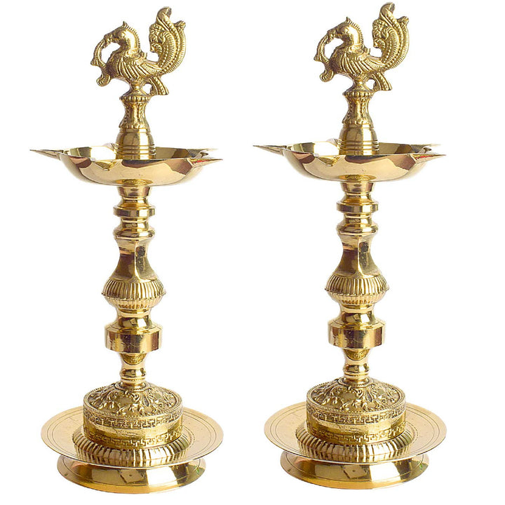 Shop 13 Inch 1 Step Embossed Peacock Kerala Diya | Satvikworld.com