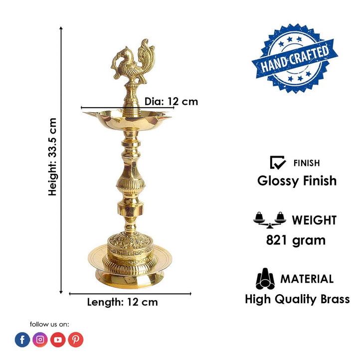 13 Inch Embossed Brass Peacock Kerala Samai Diya | Brass Peacock Diya | Kerala Samai Deepam | Embossed Brass Diya | Traditional Kerala Diya | Brass Oil Lamp | Spiritual Brass Lamp | Pooja Diya | Peacock Design Diya | Kerala Temple Lamp | Indian Ritual Lamp | Brass Diya for Pooja