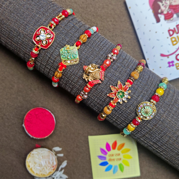 • Package: Assorted Rakhi Set of 5
