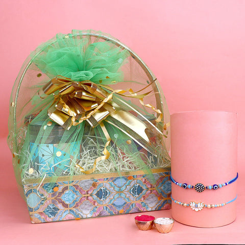 Make your Rakhi celebrations even more memorable, delightful, and personalized with our thoughtfully curated Rakhi gift hampers. Our collection includes a wide range of options, such as Rakhi with delectable sweets that tantalize the taste buds and evoke happiness, Rakhi with wholesome dry fruits that symbolize good health and abundance, Rakhi with indulgent chocolates that bring sweetness and joy, and Rakhi with personalized messages or names that add a heartfelt touch. These thoughtful gestures convey your affection, care, and thoughtfulness, making your Rakhi festivities truly special and unforgettable.