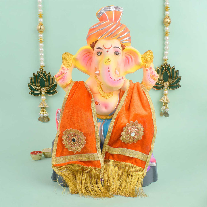 orange Patka |  Angvastra | Spiritual Duppata | Ganesh Chaturthi pooja cloth | Ganesha Angvastra | Religious cloth for Ganapati celebration | Ganesh Chaturthi | orange pakta for ganesha |