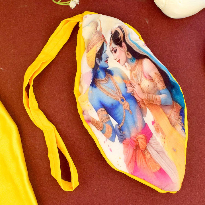 Item Name: 100% Cotton Radha Krishna Photo Jap Mala Jholi Bag (Assorted)