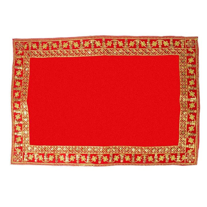 Package Content: 4 Pcs of Designer Border Velvet Aasan 16x24 Inch with Golden Lace all over the Border