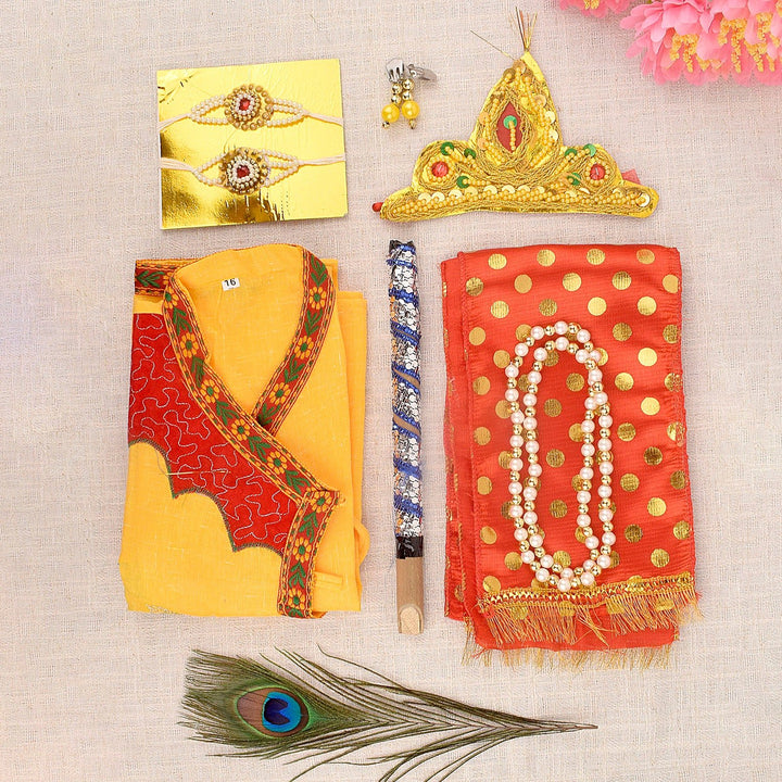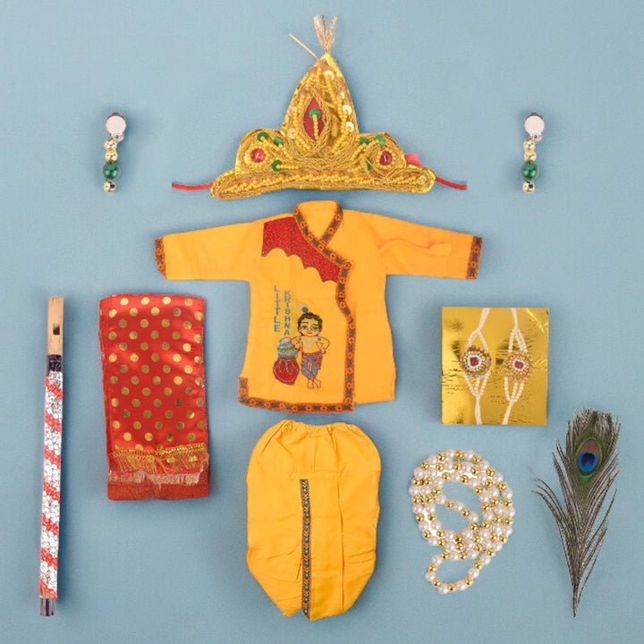 Kids's krishna Outfit Yellow Dhoti Kurta with Jewellery/Shingar Set