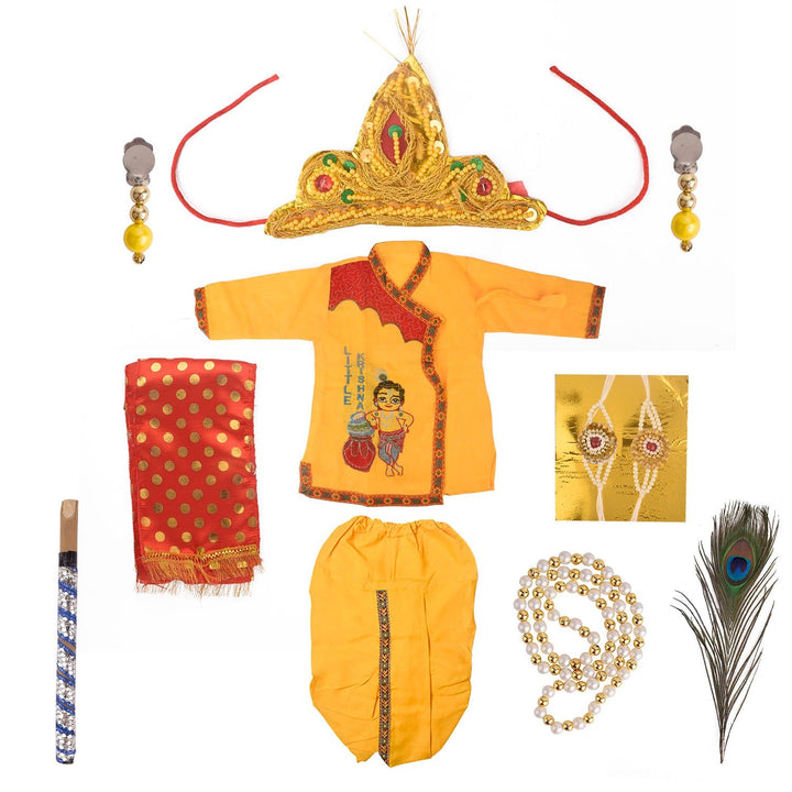 • Item Name: Kids's krishna Outfit Yellow Dhoti Kurta with Jewellery/Shingar Set