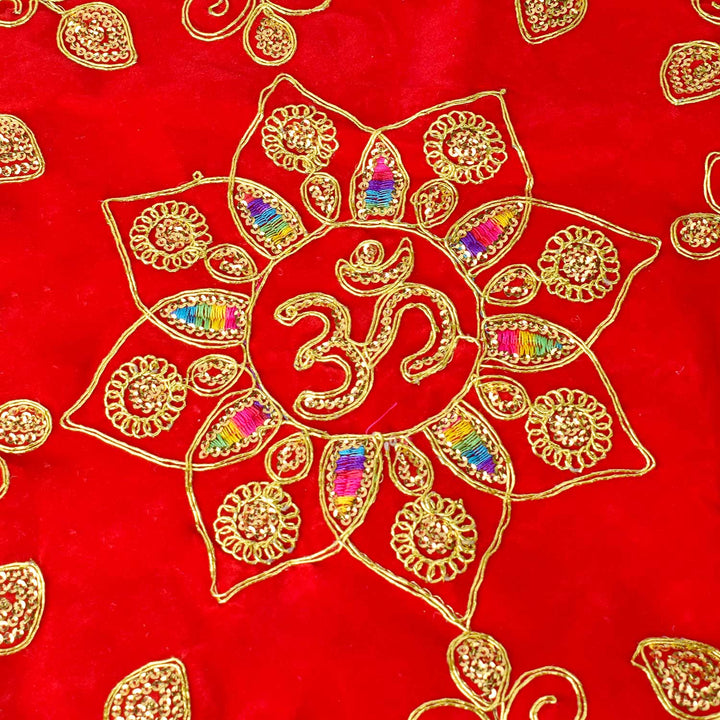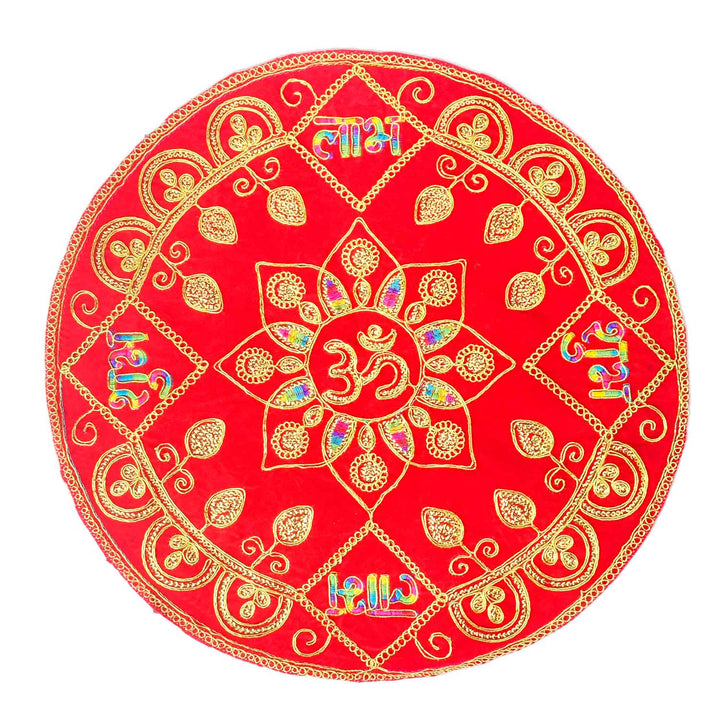 Round Shape Asan | Velvet Pooja Cloth | Medium Round Pooja Mat | Asan for Deity | Round Chowki Cover | Red Pooja Mat | Velvet Aasan for Puja | Round Mat for Temple | Decorative Puja Aasan | Mandir Cloth Round