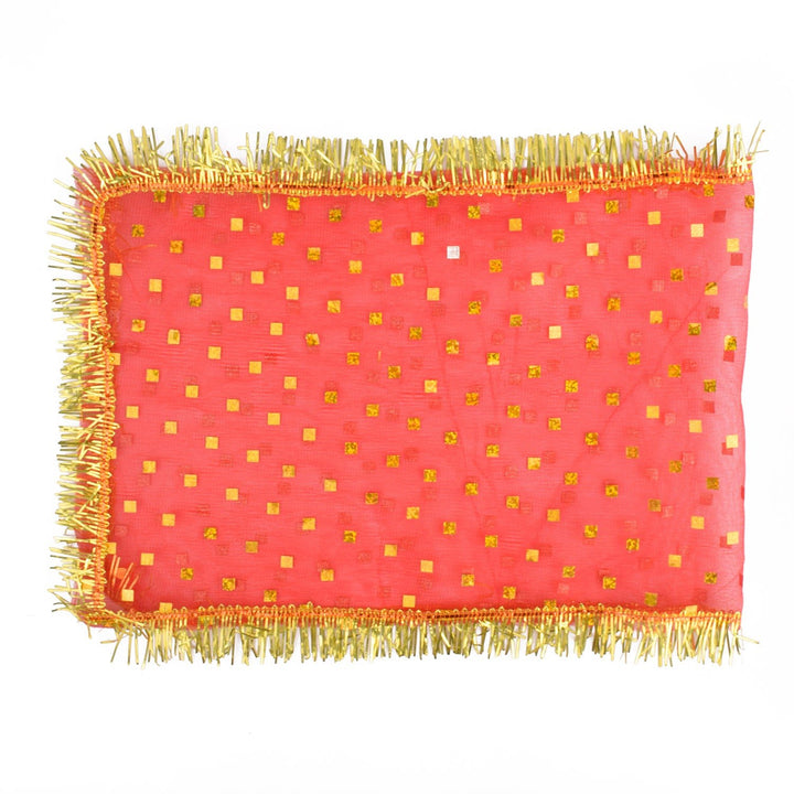 This Chunni is Prefect Size for any big Idol of Mata it can Easily Cover full Idol in Best Way. Satvik's Mata Ki chunri, traditional red net fabric for all Hindu goddess, Indian traditional fabric for puja, Online pooja Accessories Store Durga MAA Chunni Chunari Chunri.