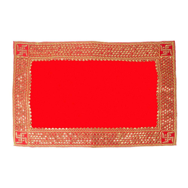 Package Content: 4 Pcs of Swastik Design Velvet Aasan 16x24 Inch with Golden Lace all over the Border