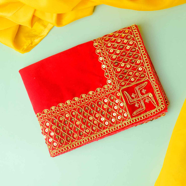 Size and Craftsmanship: 16 x 24 Inch Size, Made from High-Quality Velvet with Swastik Design and Golden Lace all over the Border
