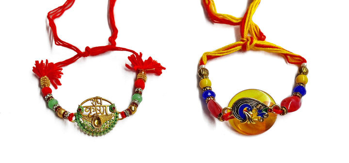 Satvik Set of 2 Handcrafted Radhey Krishna And Peacock Rakhi – Satvikworld.com