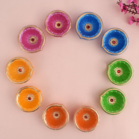 Clay Matki Diya 10 Pc Set W...
