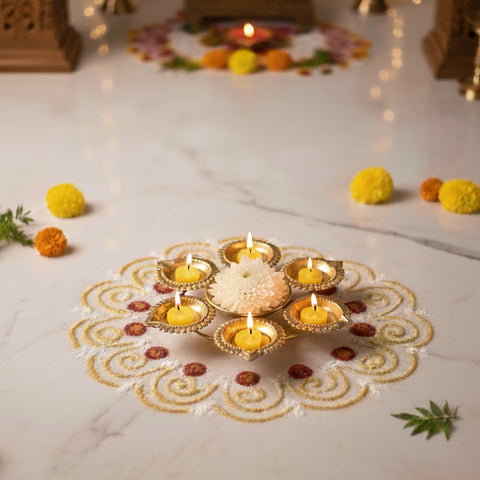 Illuminate Your Devotion: Explore our exquisite assortment of diya and deepam, meticulously crafted with precision and adorned with intricate designs. Our brass diya not only serve as functional puja items but also add an elegant touch to your sacred space. Whether your preference is traditional or contemporary, we have the perfect diya to illuminate your devotion.