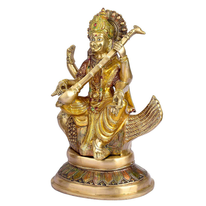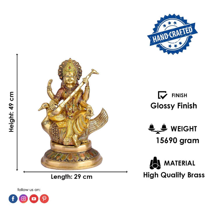 • Material: The Saraswati Mata Murti is made from High-Quality Brass Material