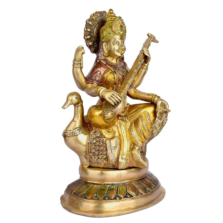 Buy 19.3 Inch Big Saraswati Maa Brass Statue | Satvikworld.com