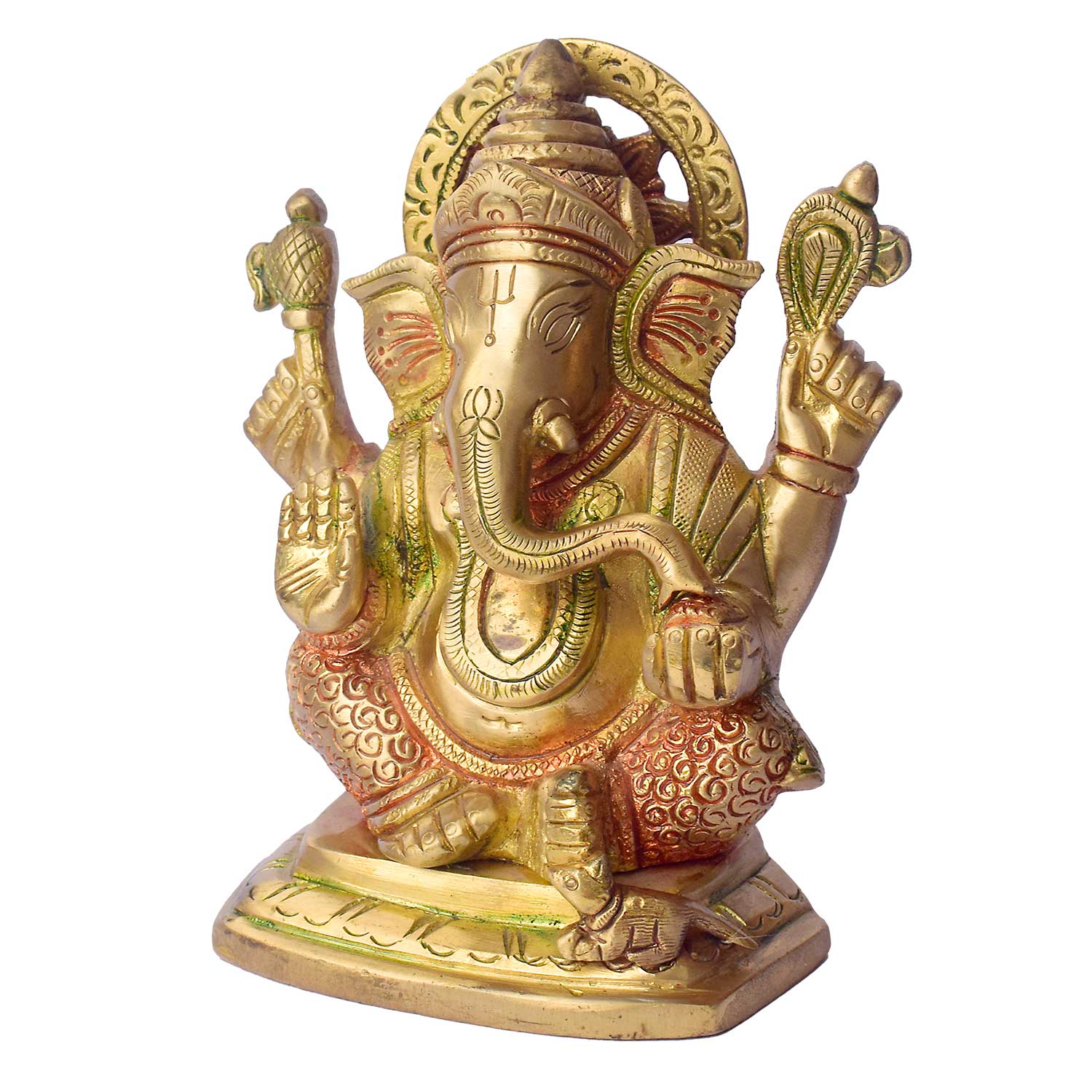 • About the Product: 5.4 Inch Multicolor Brass Lord Ganesha Idol for Home Mandir