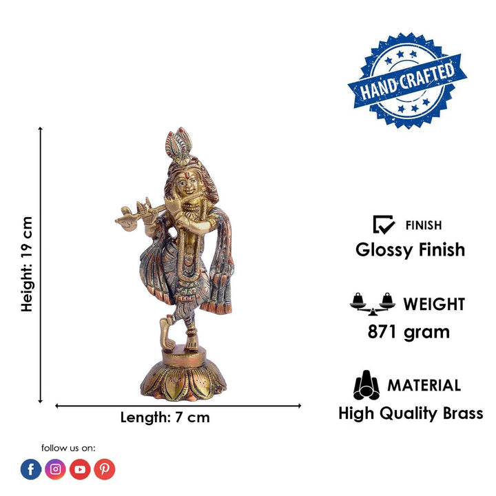 • Item Name: 7.5 Inch Lord Krishna Brass Idol | Kanha Brass Murti