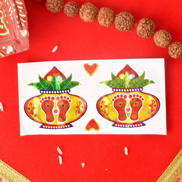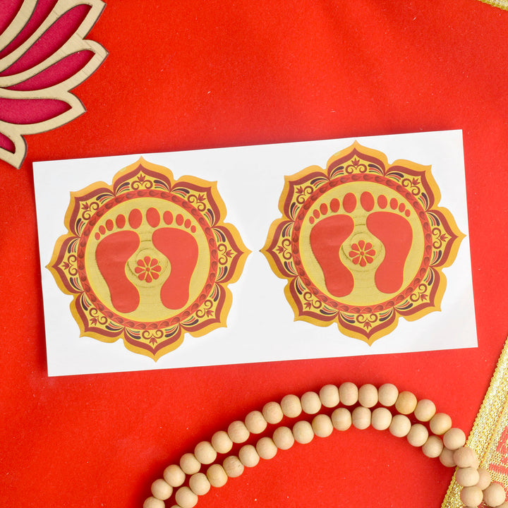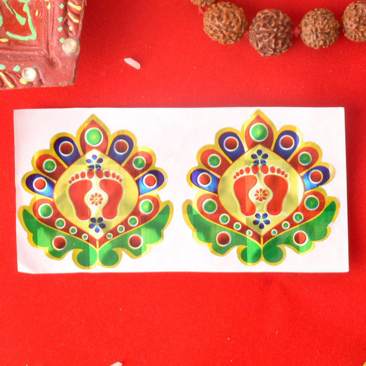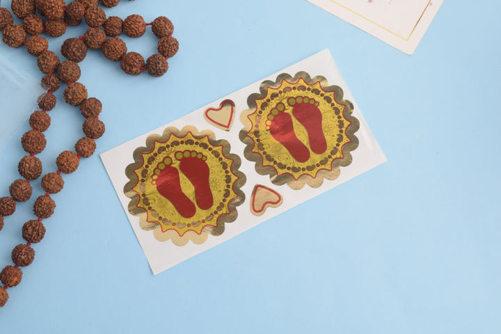"Charan Prints with Traditional Designs Stickers (Assorted) – Celebrate spirituality with these exquisite stickers featuring Charan footprints adorned with intricate traditional patterns. Available in an assortment of vibrant designs, these stickers add a sacred and decorative touch to your spiritual spaces, gifts, or personal items."