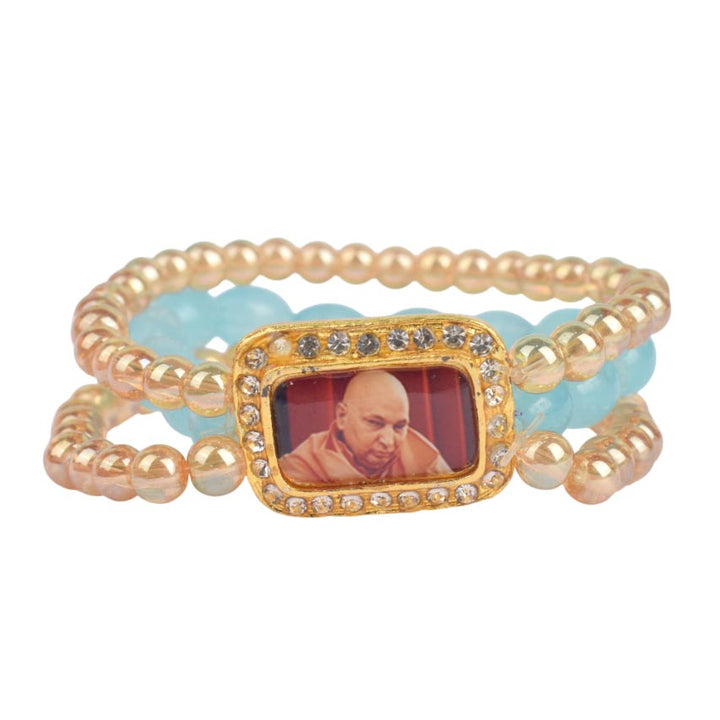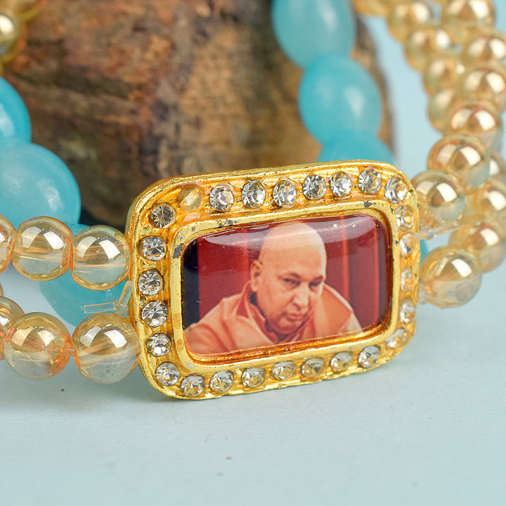 Buy Online | Golden Clear Baby Blue Triple Layer Guruji Swaroop Bracelet | satvikworld.com – Satvikworld.com