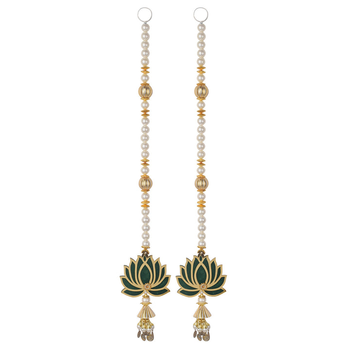 About Product: Bring home grace, tradition, and beauty with this Graceful Lotus with Pearls Door Side Hanging, a perfect accent for festive and spiritual decor. Featuring intricately crafted lotus motifs—a symbol of purity, divinity, and new beginnings—this hanging is adorned with elegant pearl beads that add a soft, luxurious touch.