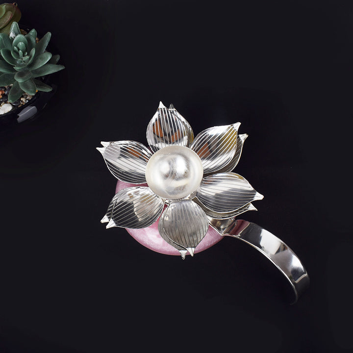 Buy online| Silver Lotus Handle Diya with Resin Base | Satvikworld.com