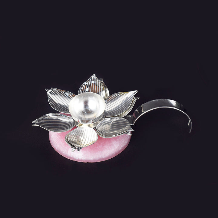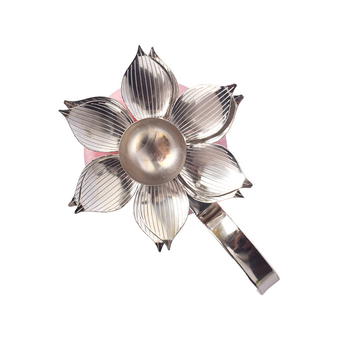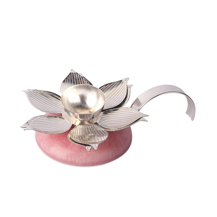 • Item Name: Silver Lotus Handle Diya with Resin Base
